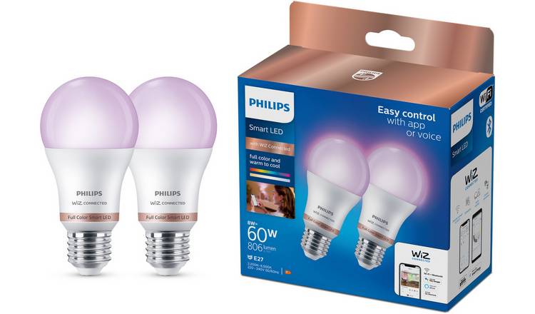 Buy Philips WiZ E27 Colour Smart LED WiFi Bulb 2 Pack Smart light